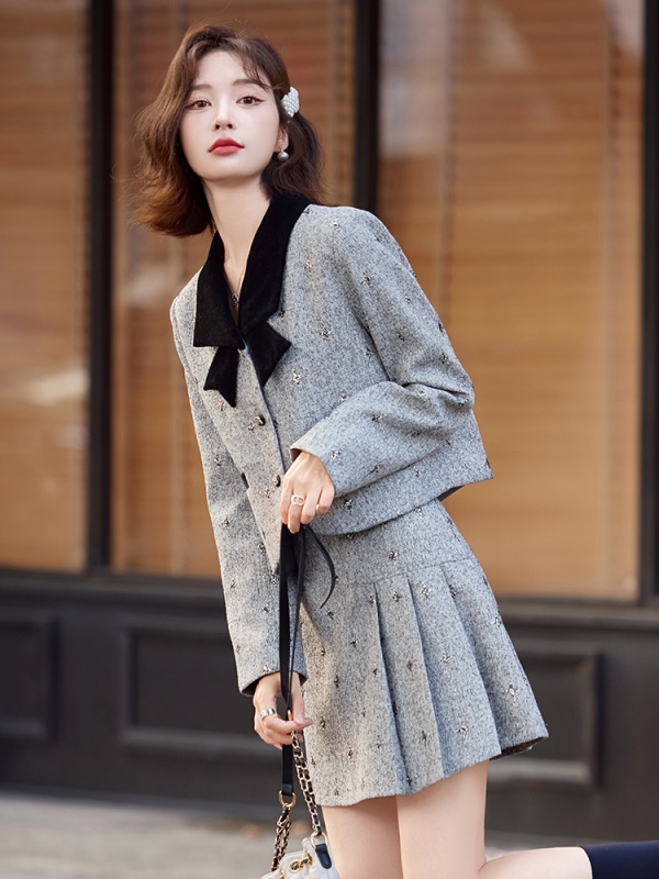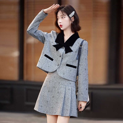 商品名称:小香风蝴蝶结套装女2025春装新款时尚气质减龄撞色小个子两件套裙