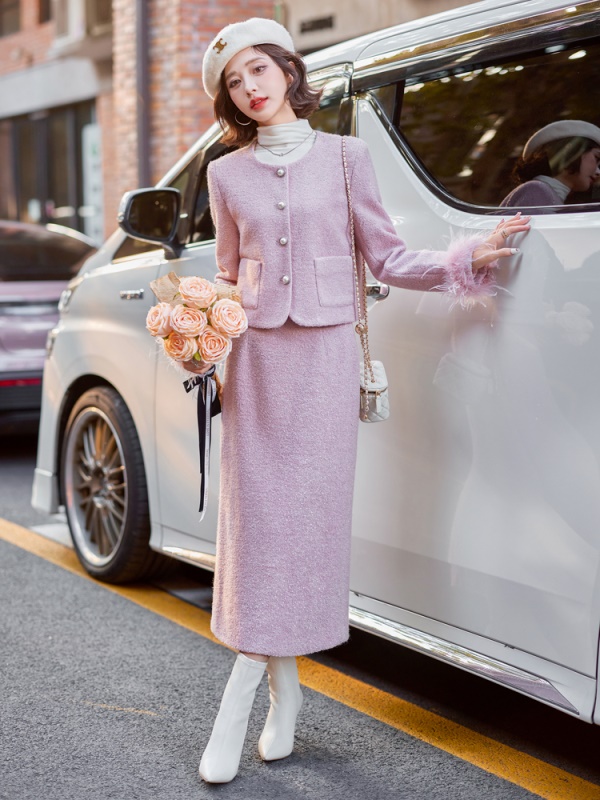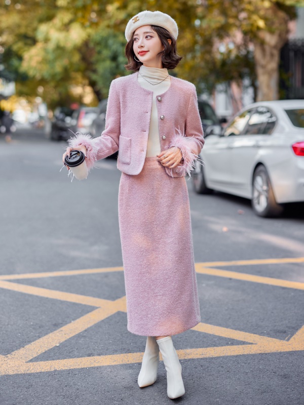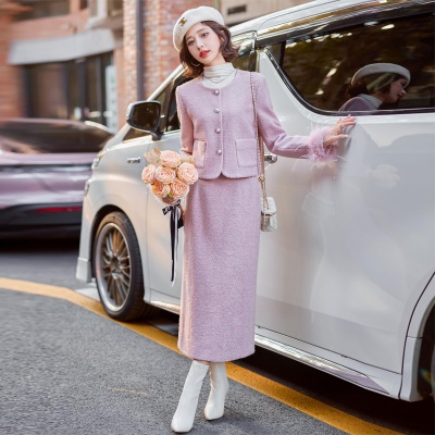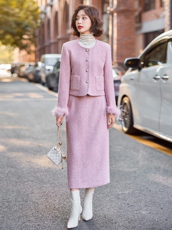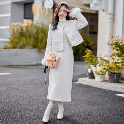 商品名称:高级感小香风羽绒套装女2025年秋冬新款时尚无领半身裙毛呢两件套