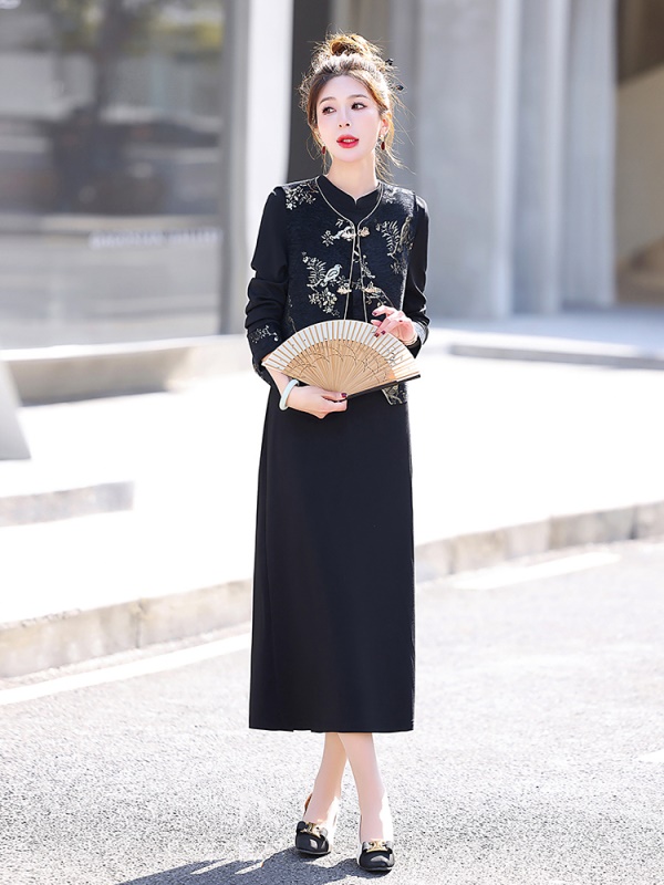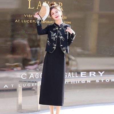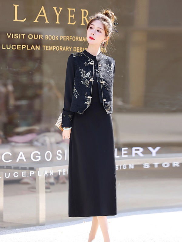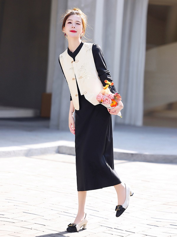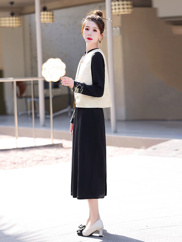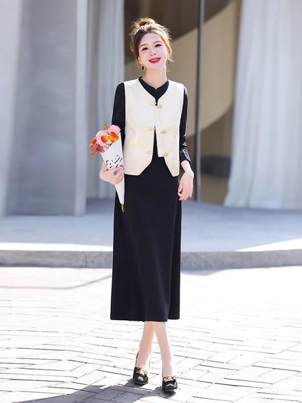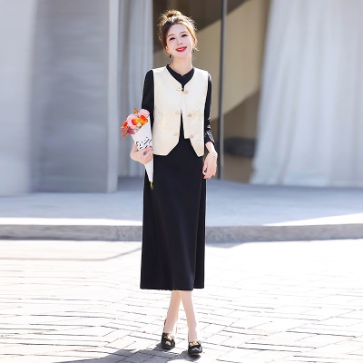商品名称:新中式国风套装2025春季新款小香风漂亮刺绣马甲搭配丝绒连衣裙女