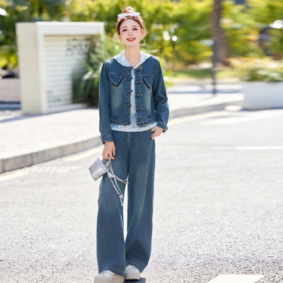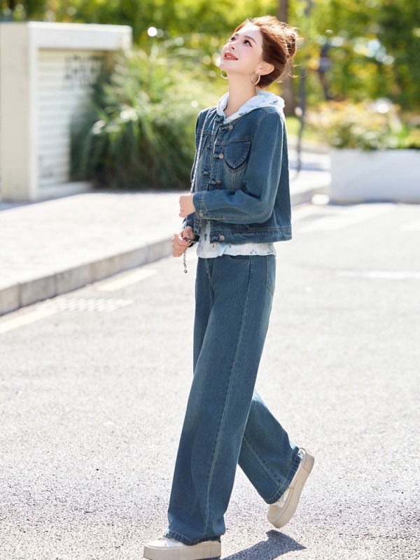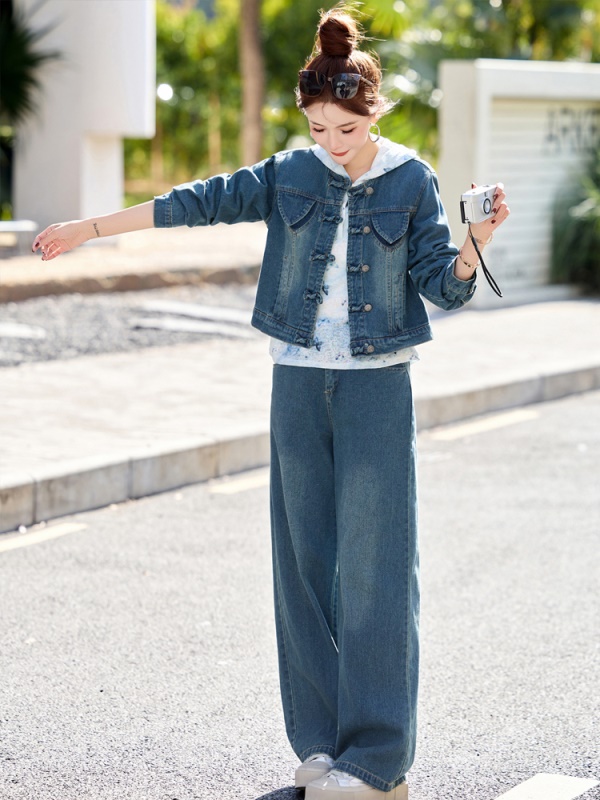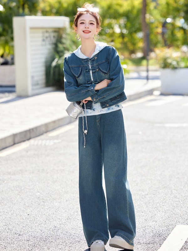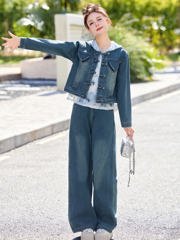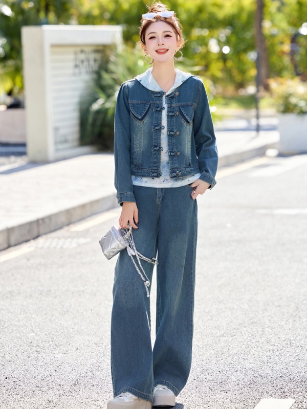 商品名称:新中式连帽牛仔套装女2025春秋新款时尚高级感国风开春穿搭三件套