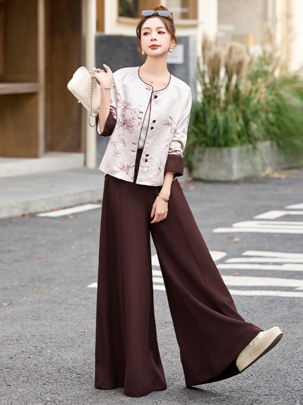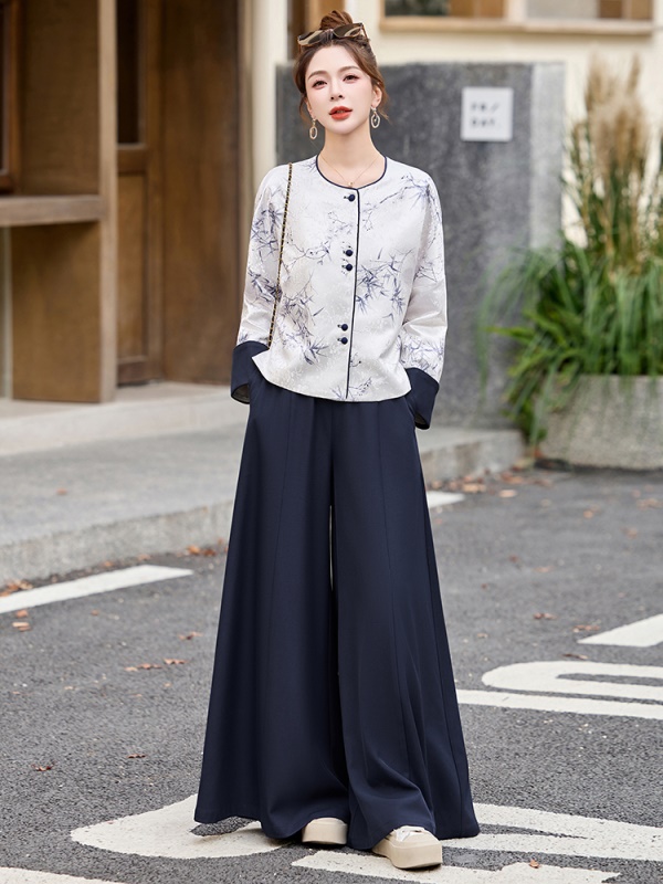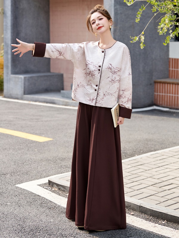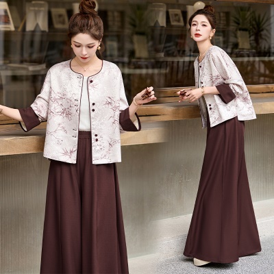 商品名称:新中式国风套装女2025春季新款高级感御姐气质阔腿裙裤穿搭两件套
