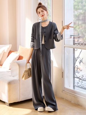 时尚拼接西装套装女2025春季新款高端大牌减龄爆款阔腿裤两件套潮