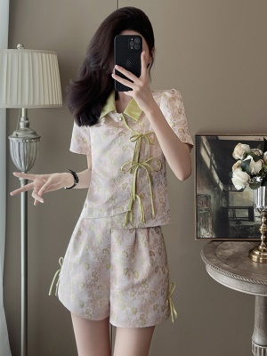 2025新款夏季气质显瘦时尚中国风短袖两件套洋气旗袍上衣短裤套装
