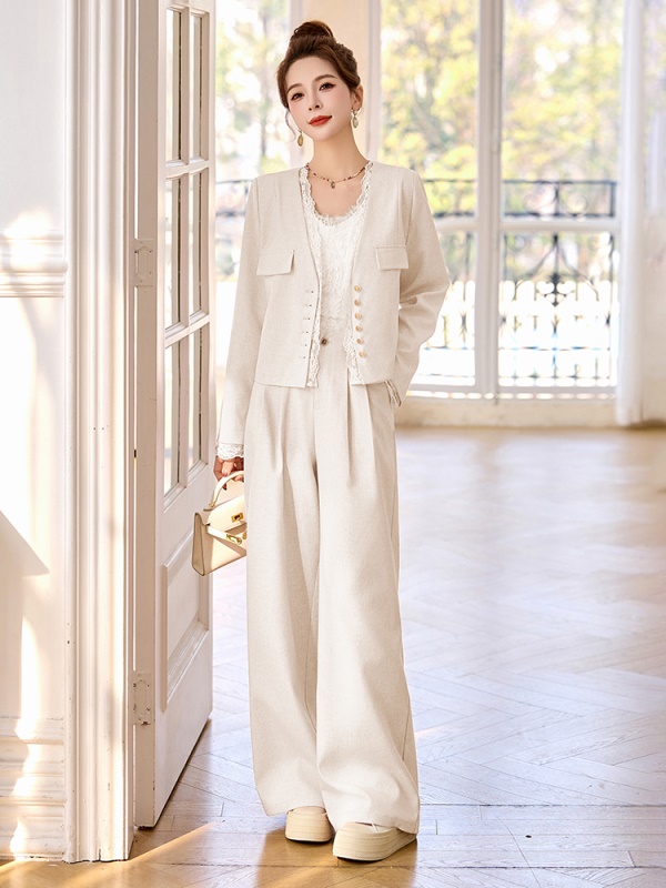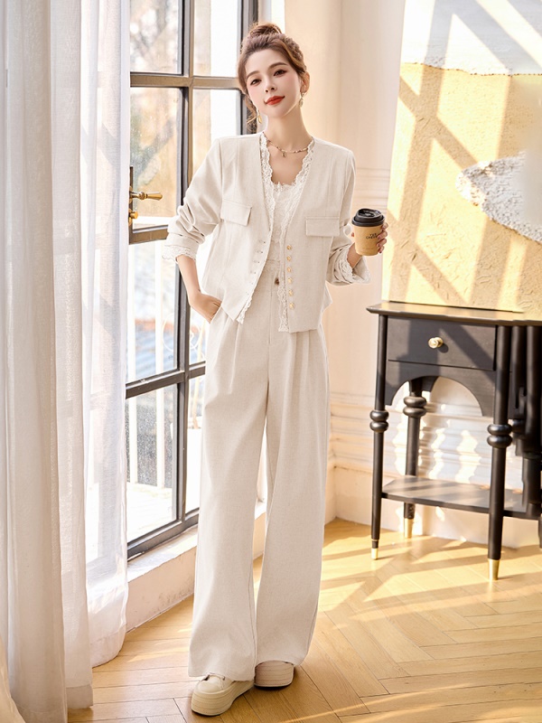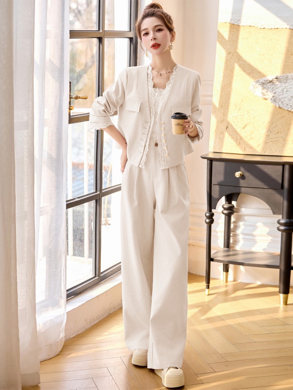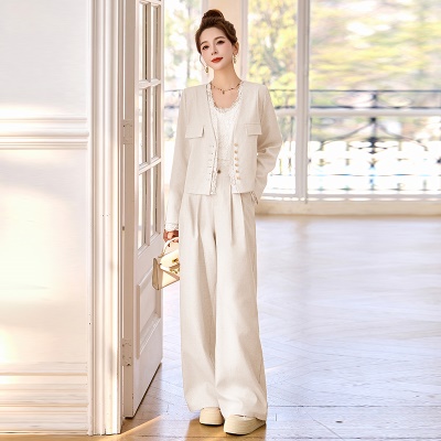 商品名称:高级感拼接西装套装女2025春季新款干练气质显高阔腿裤职业两件套