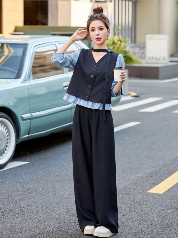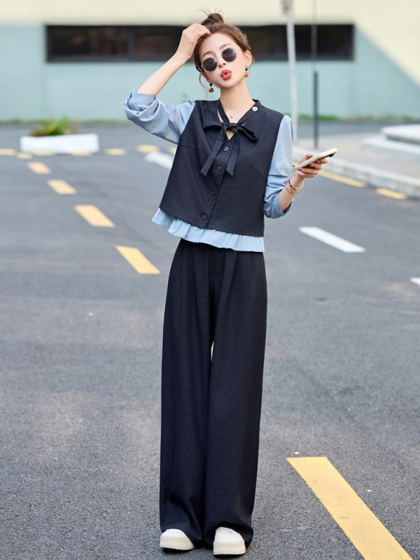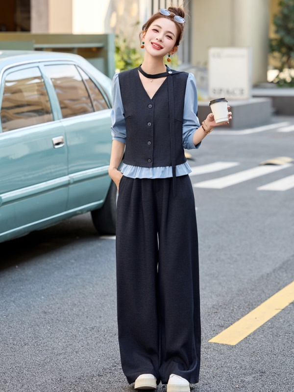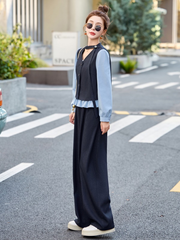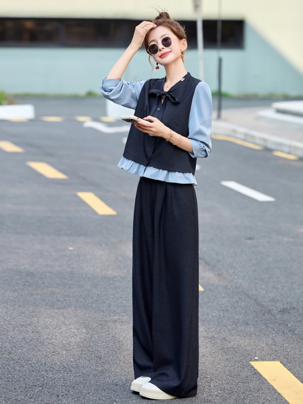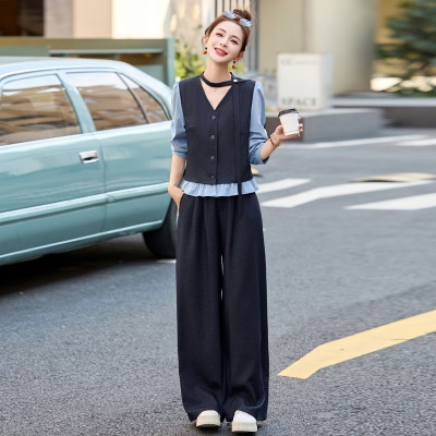 商品名称:小香风拼接时尚套装女2025春季新款休闲气质干练爆款撞色两件套裤