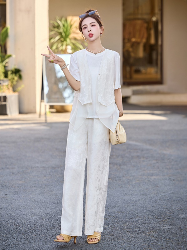 商品名称:新中式国风洋气套装女2025夏季新款爆款轻奢高级感洋气雪纺三件套