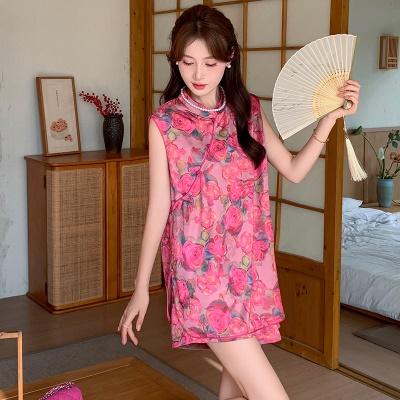 早秋新款国风女装连衣裙小个子高级感新中式气质收腰显瘦旗袍短裙