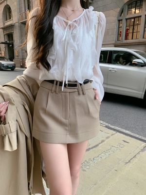 ByYou 秋冬新款卡其色a字西装半身裙百搭高腰显瘦短裙含短裤内衬