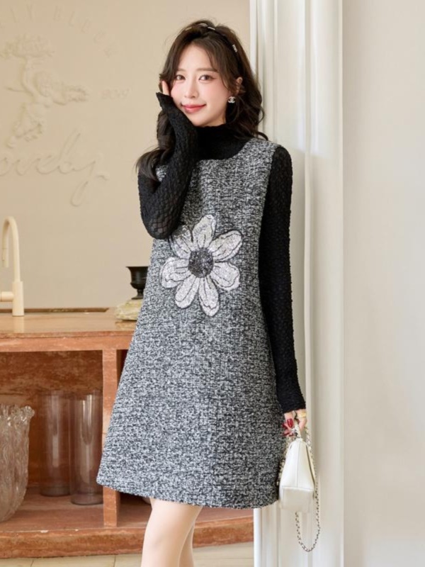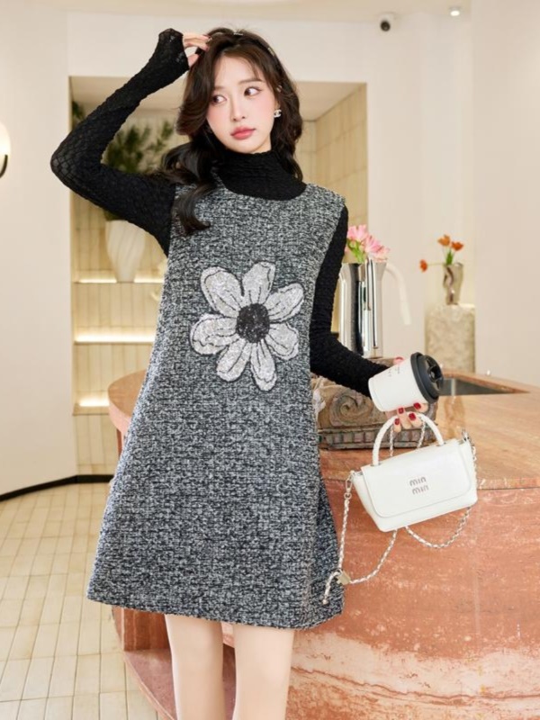 商品名称:超火小香风春装套装女2025新款爆款洋气减龄毛呢背心连衣裙两件套
