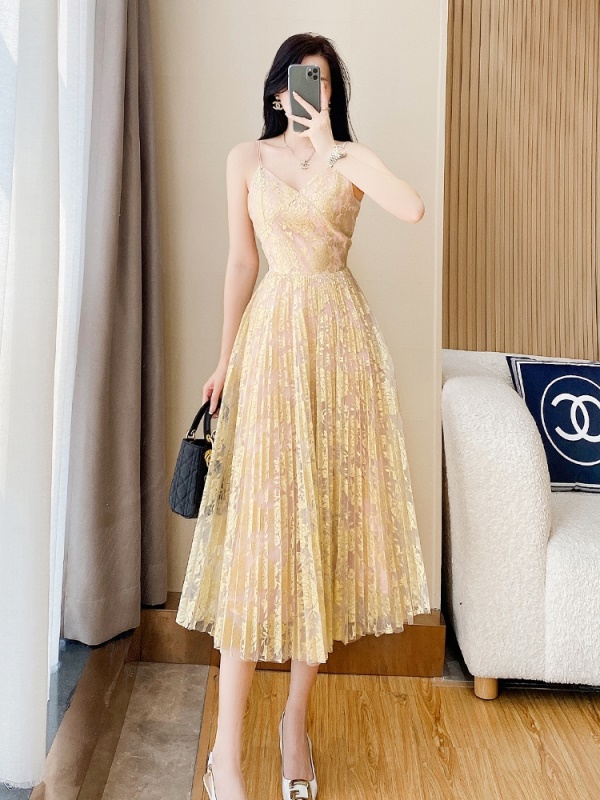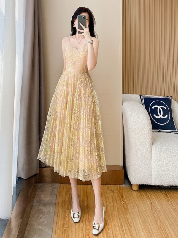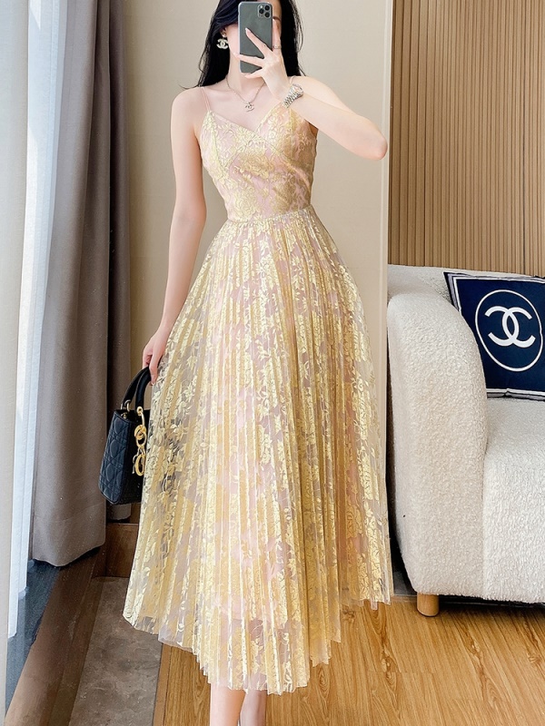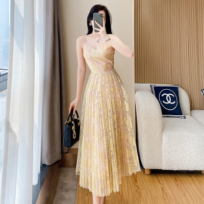 吊带连衣裙女夏2025年法式新款名媛气质显瘦海边度假V领长款裙子