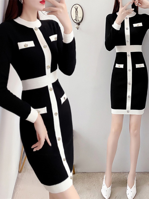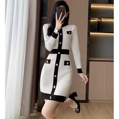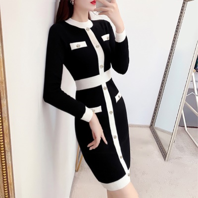 针织包臀连衣裙女秋冬小个子外穿毛衣裙新款配大衣的打底内搭裙子