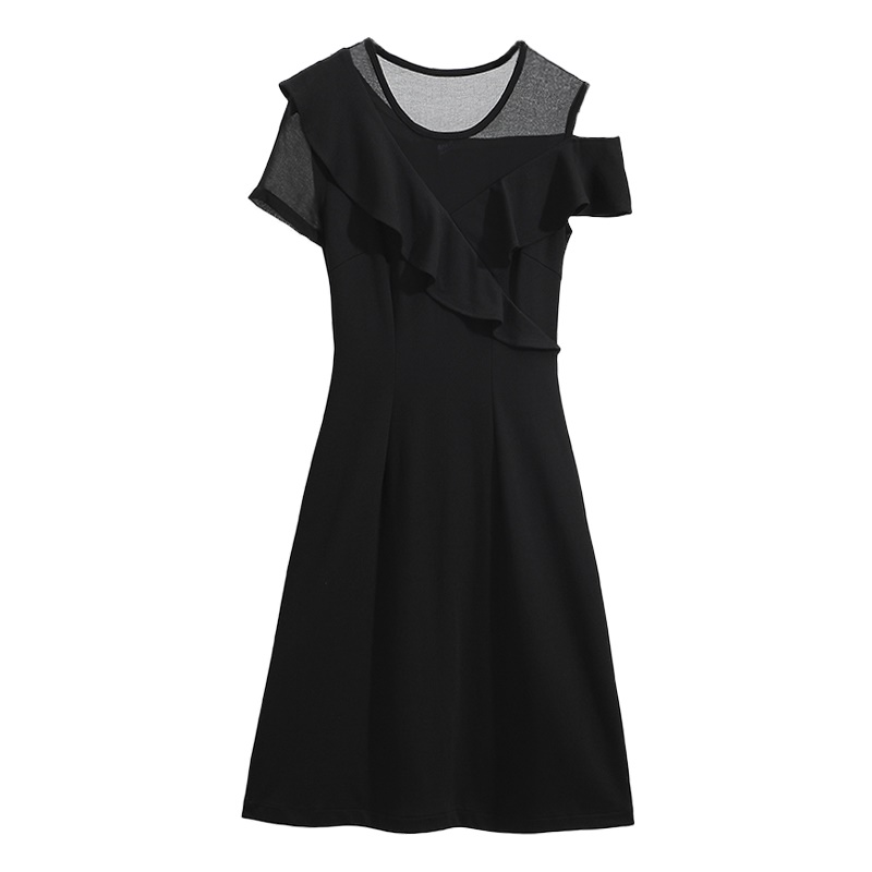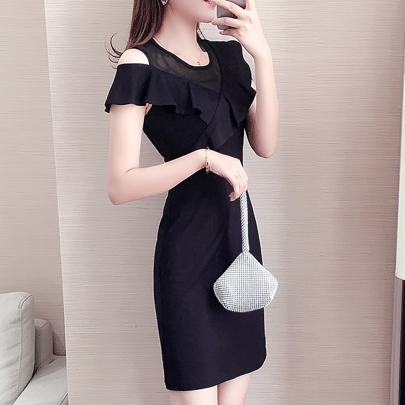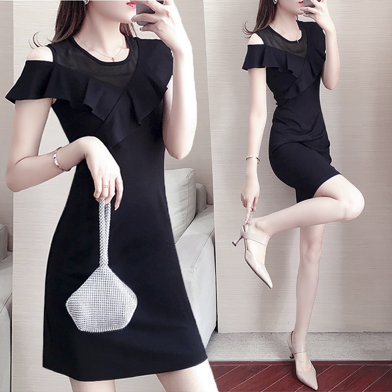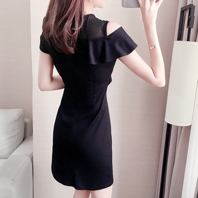 夏季小个子露肩小黑裙显瘦连衣裙赫本风性感气质修身包臀裙子女夏
