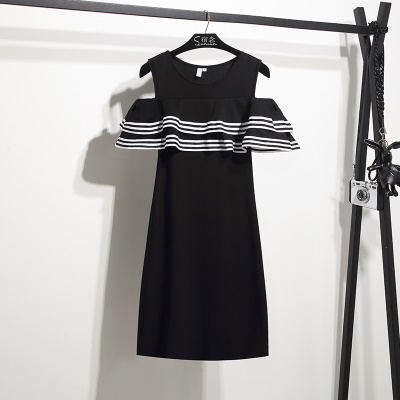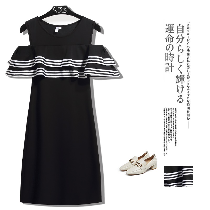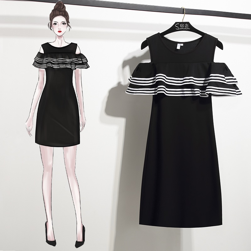 商品名称:2025夏季矮小个子心机小黑裙赫本风短裙一字肩露肩连衣裙修身显瘦