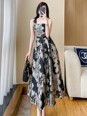 夏季新款显瘦吊带连衣裙赫本风礼服法式高级感背心收腰A字长裙子