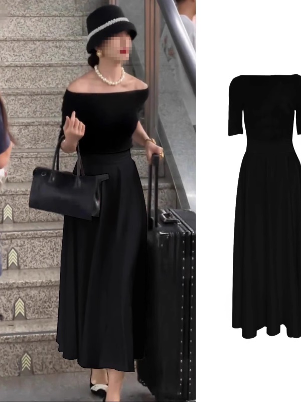 法式赫本风黑色镂空连衣裙女夏季新款高级感气质显瘦赫本风小黑裙