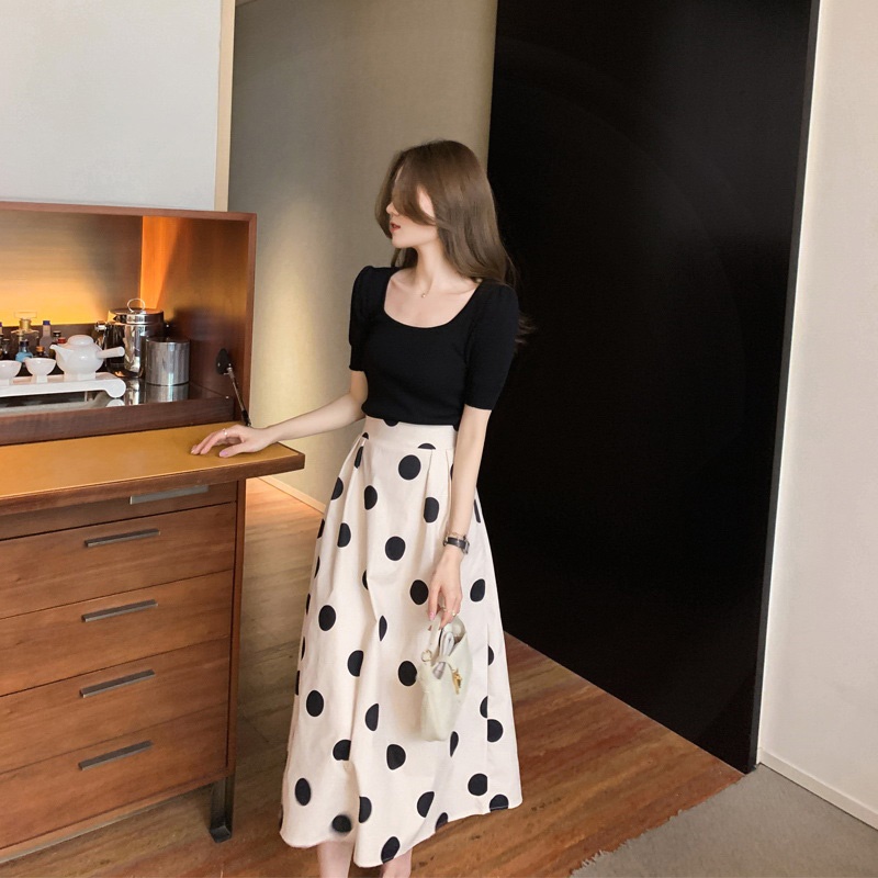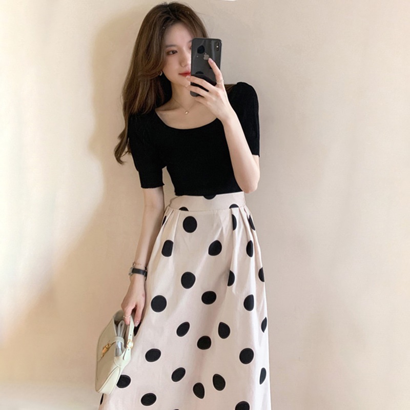 [颜色分类:黑上衣+波点半身裙 短袖 尺码:L]