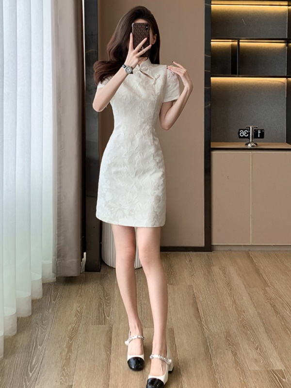 商品名称:新中式国风连衣裙气质显瘦高级感礼服裙子女白色旗袍夏季2025新款