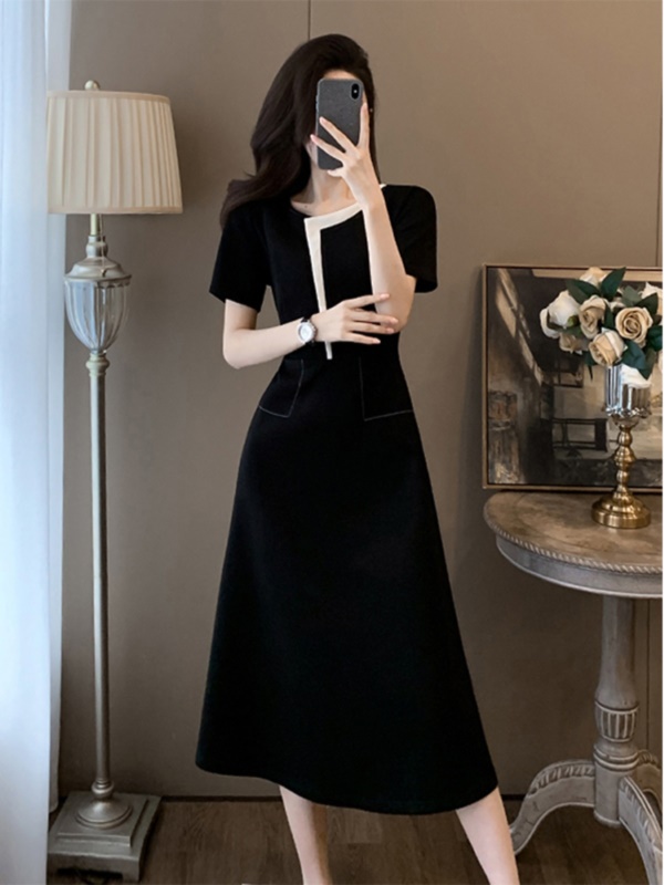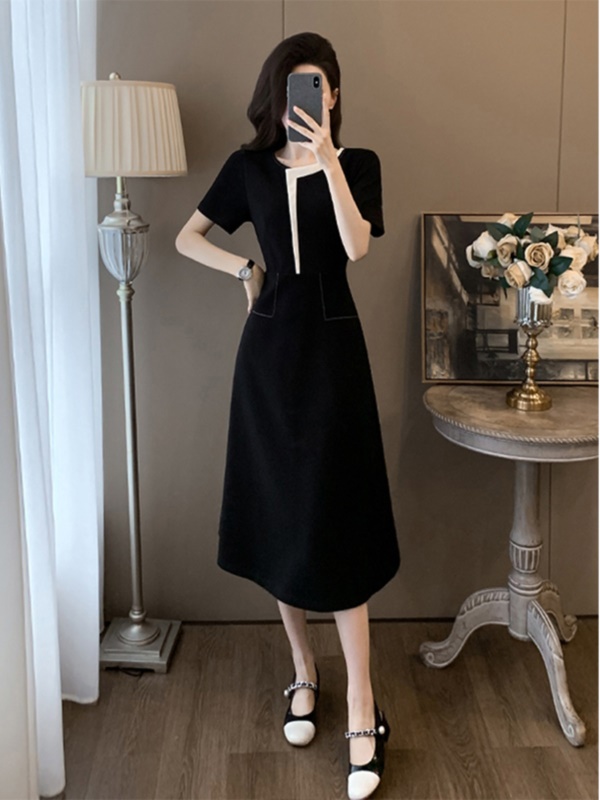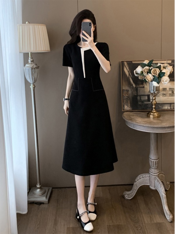 商品名称:黑色气质连衣裙女夏季2025新款遮肉显瘦洋气法式高级感赫本小黑裙