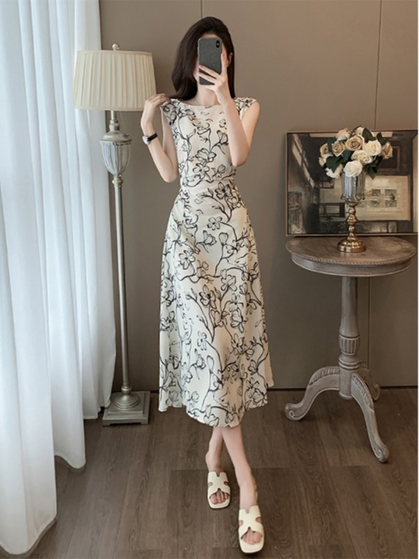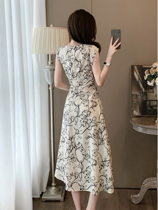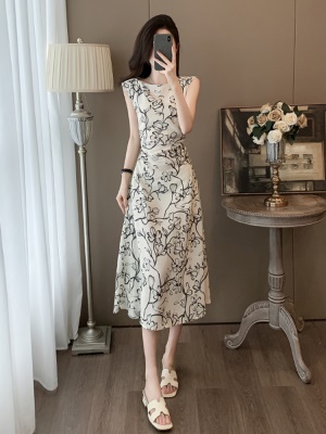碎花无袖雪纺连衣裙女夏季新款收腰气质高级感绝美法式背心长裙子