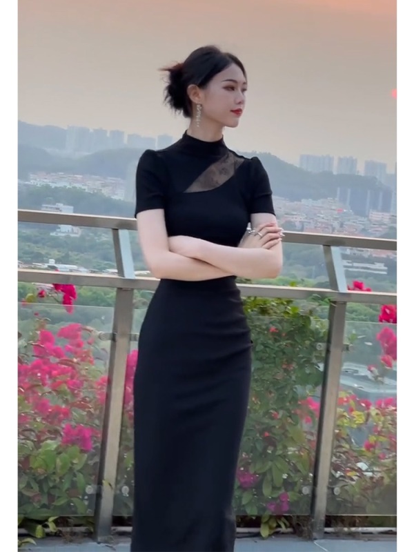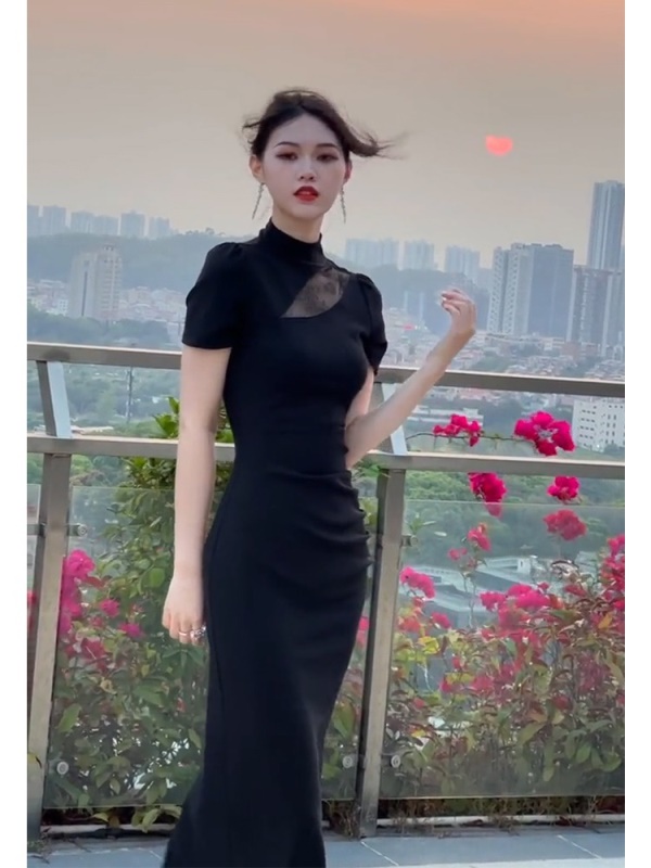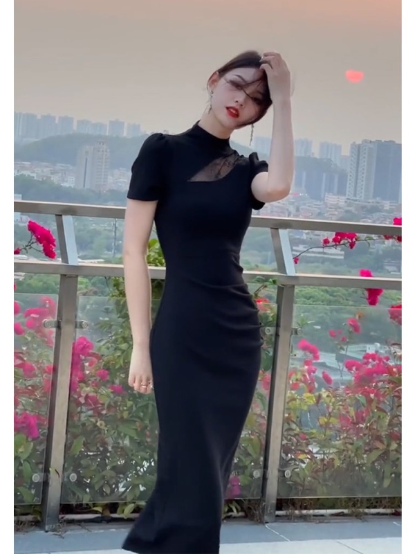 商品名称:改良旗袍高级感气质修身显瘦赫本风包臀礼服连衣裙女夏季2025新款