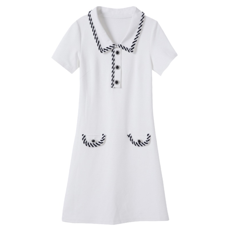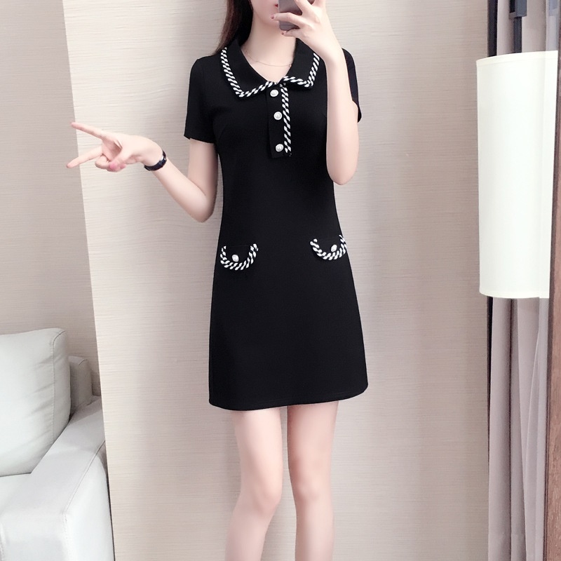 商品名称:娃娃领连衣裙矮小个子短款流行赫本小黑裙轻熟风心机小白裙短裙子