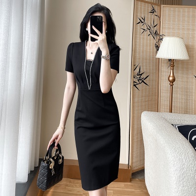 气质收腰包臀黑色连衣裙高级感干练职业赫本风小黑裙夏女神范裙子