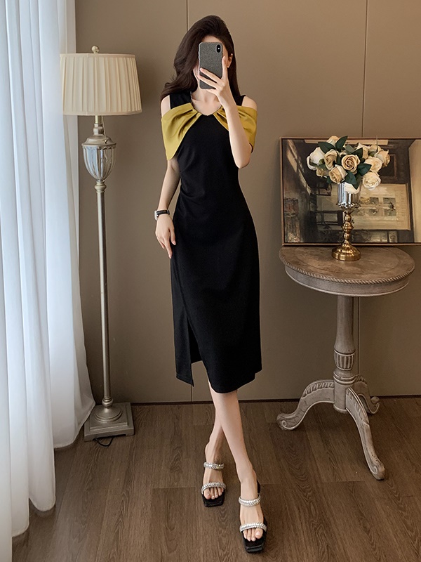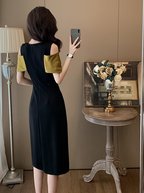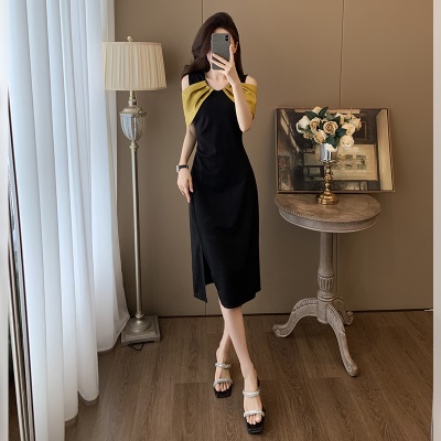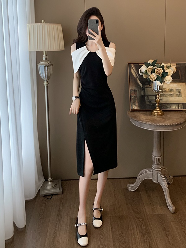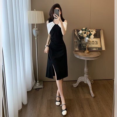 春夏女装新款设计感轻奢黑色礼服连衣裙高级感修身气质露肩小黑裙