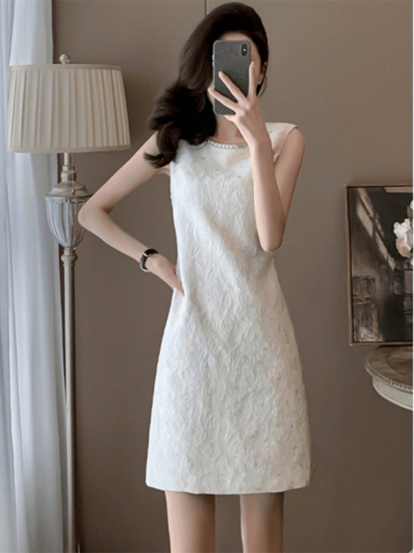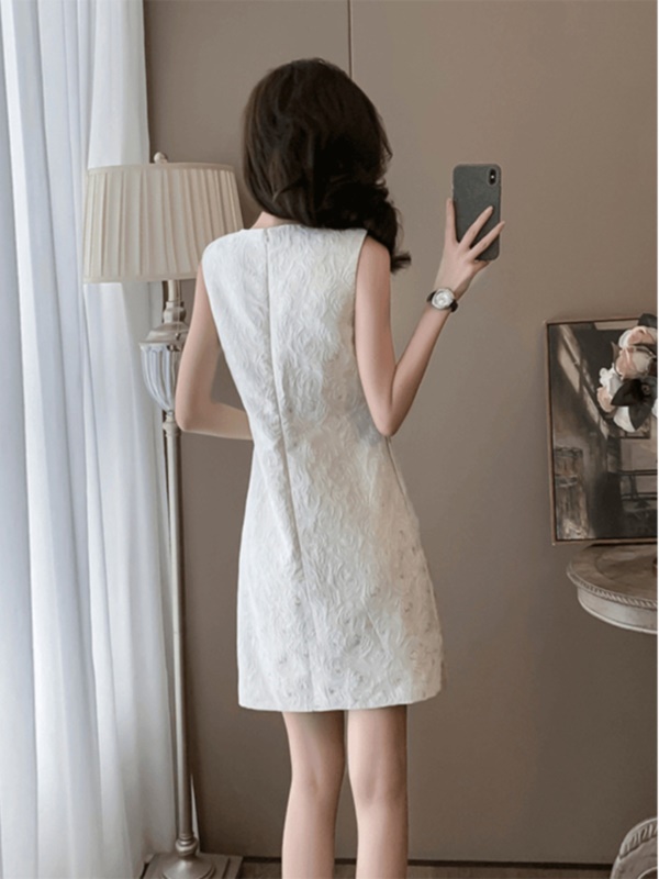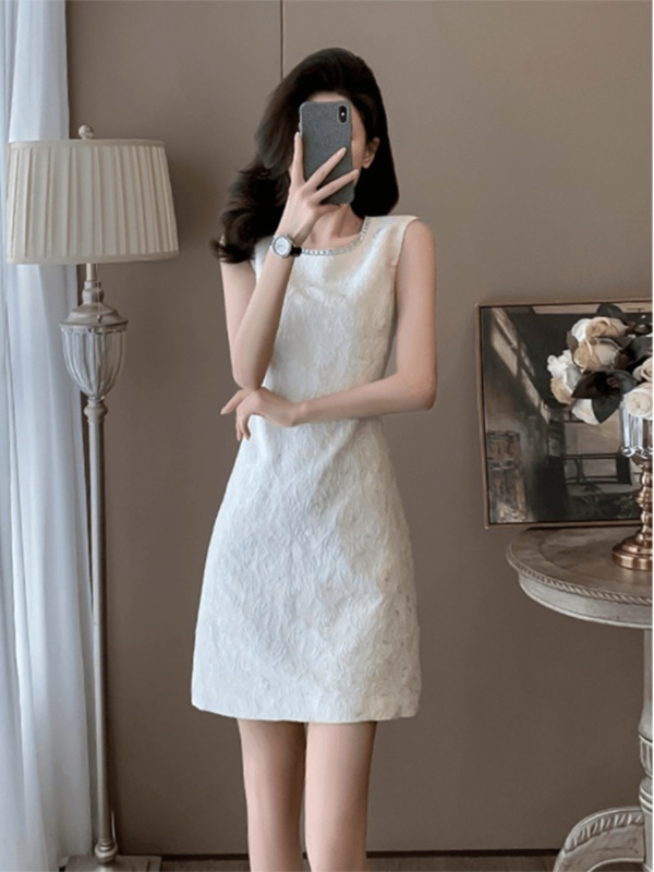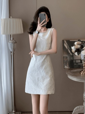气质名媛高端通勤连衣裙女夏季新款小个子收腰白色礼服无袖背心裙