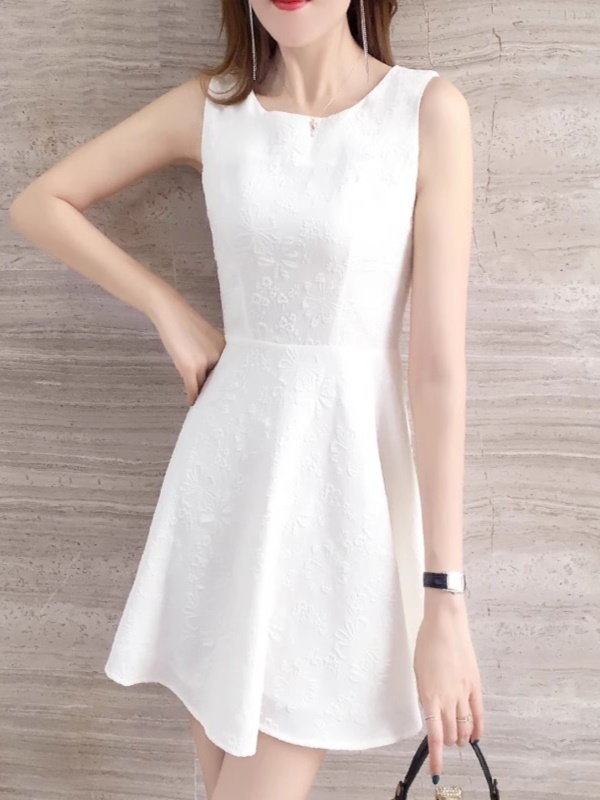 ByYou 夏季新款白色百褶雪纺吊带连衣裙长款气质收腰大裙摆仙女裙