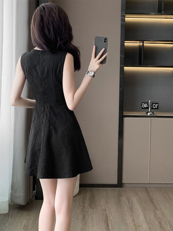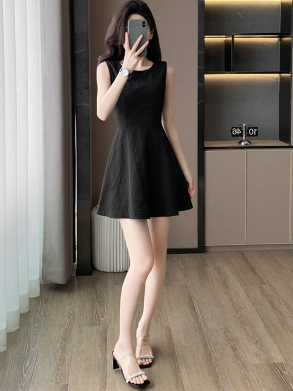 赫本风黑色无袖背心连衣裙女小个子2025夏季新款气质显瘦a字裙子