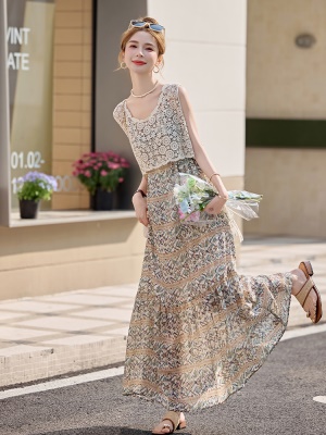 波西米亚风吊带连衣裙套装女2025夏季新款轻奢高级感长裙子两件套