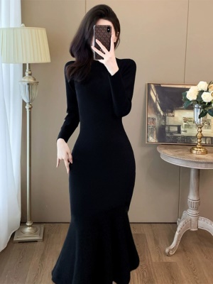 冬季新款女配大衣的内搭时尚气质修身针织打底毛衣连衣裙子女秋冬