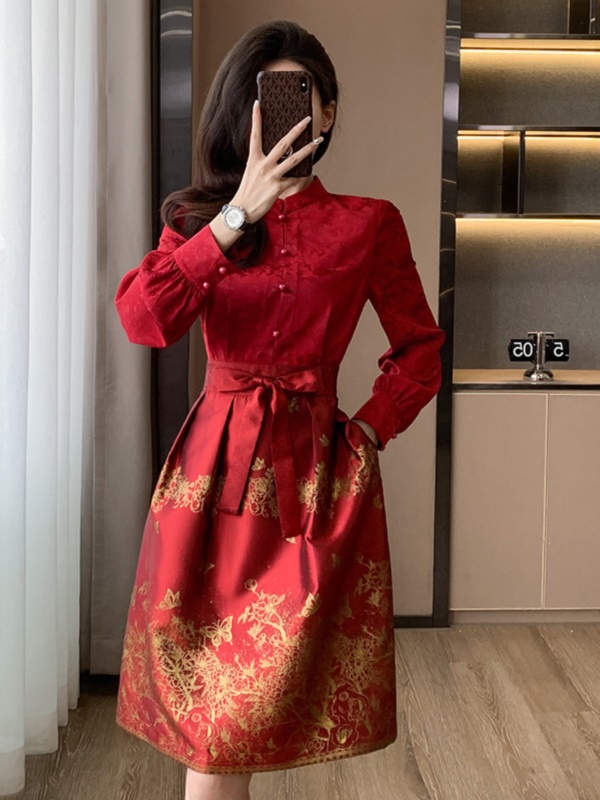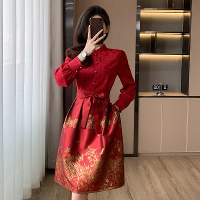 春季2025新年款中式国风旗袍改良连衣裙高级感显瘦红色年会晚礼服