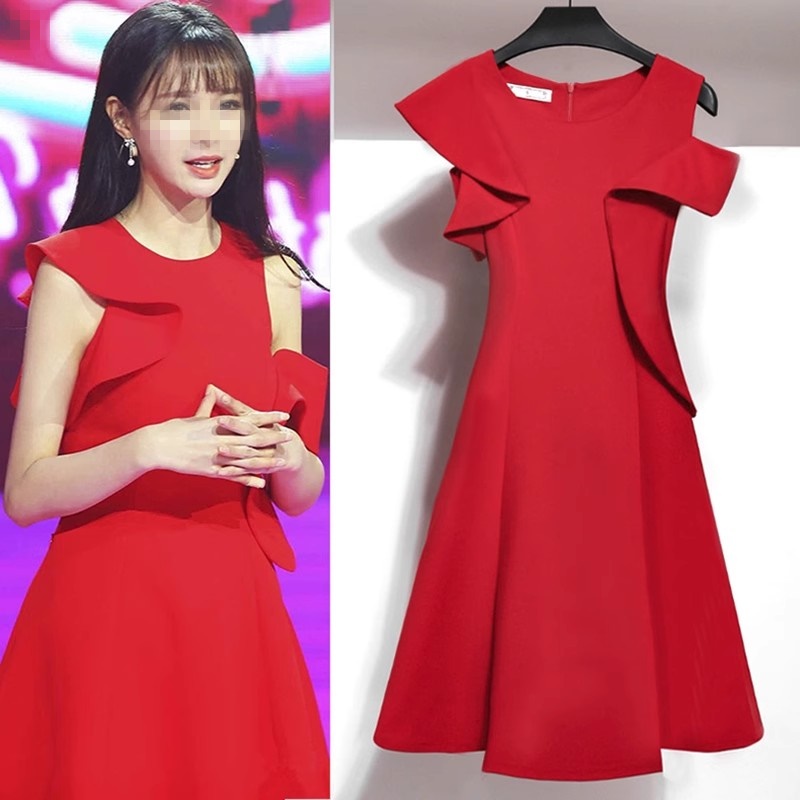 2025秋冬季新款小香风红色西装连衣裙女高级感气质修身宴会晚礼服