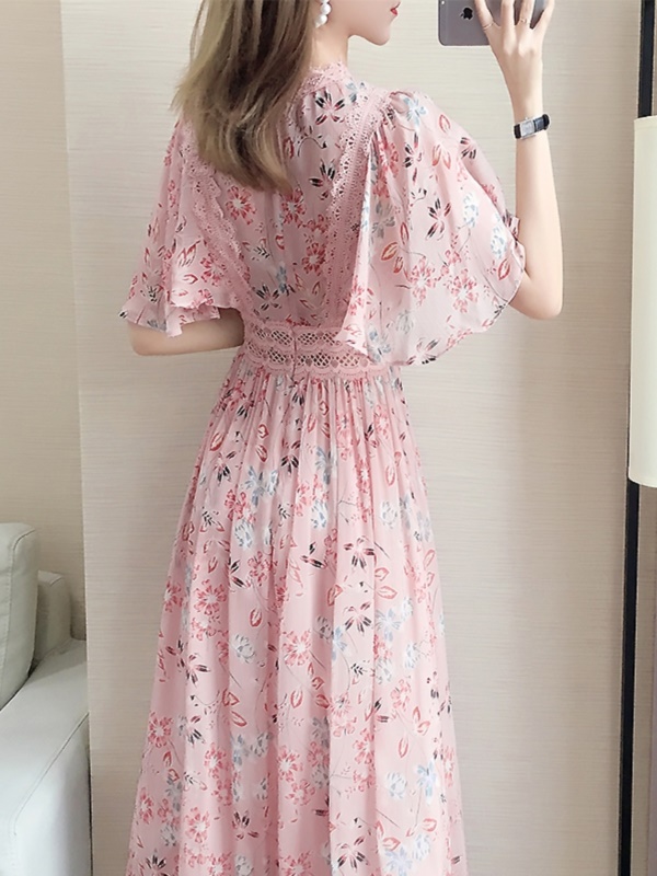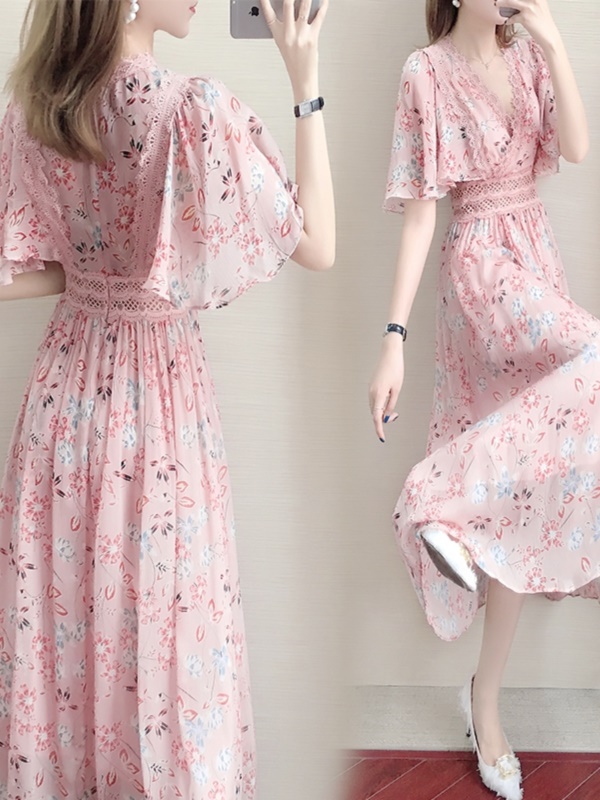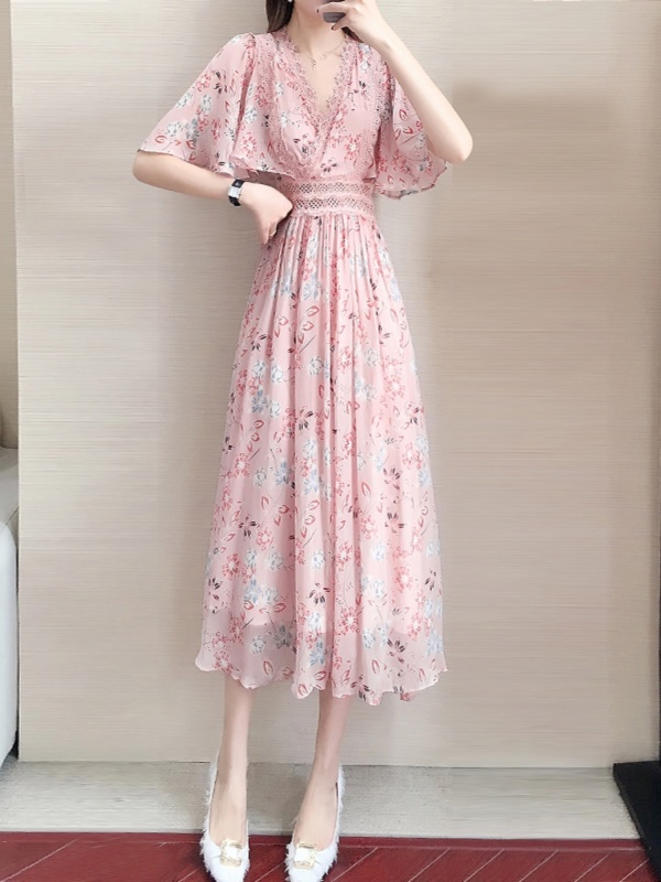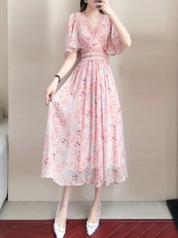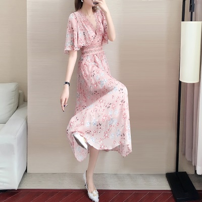 商品名称:碎花雪纺短袖连衣裙2025新款夏很仙的中国风改良旗袍长裙甜美气质