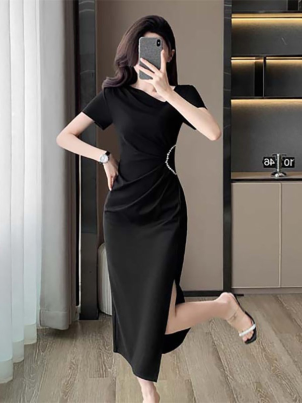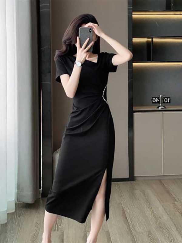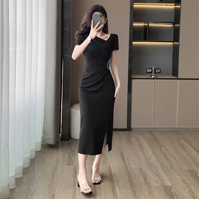 黑色修身显瘦包臀连衣裙女高级感气质名媛高端精致女神范裙子夏季