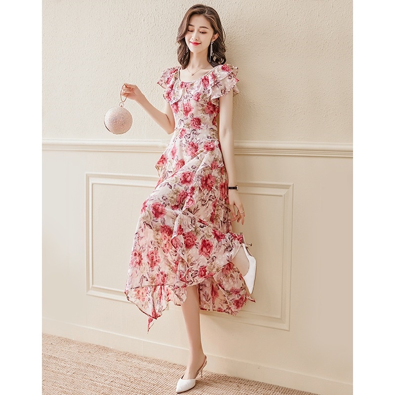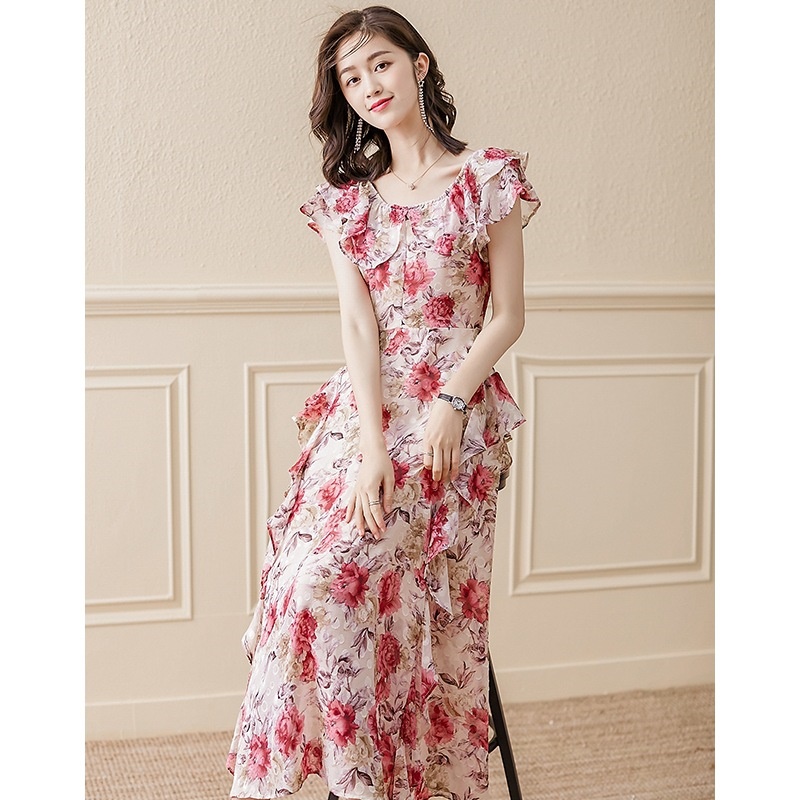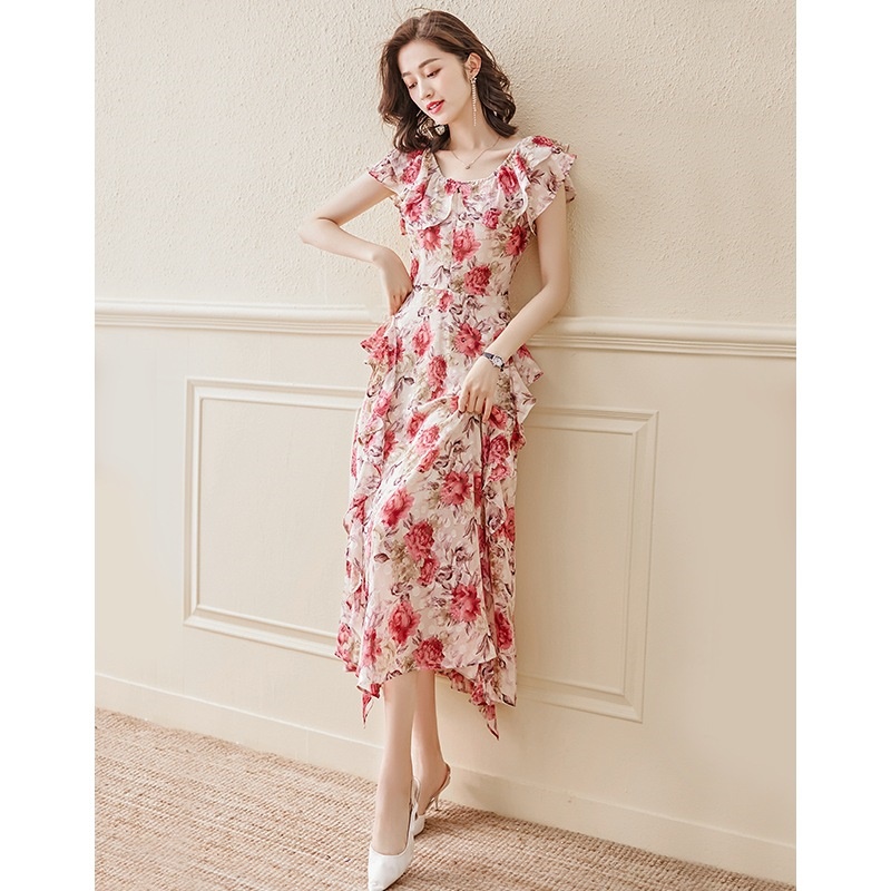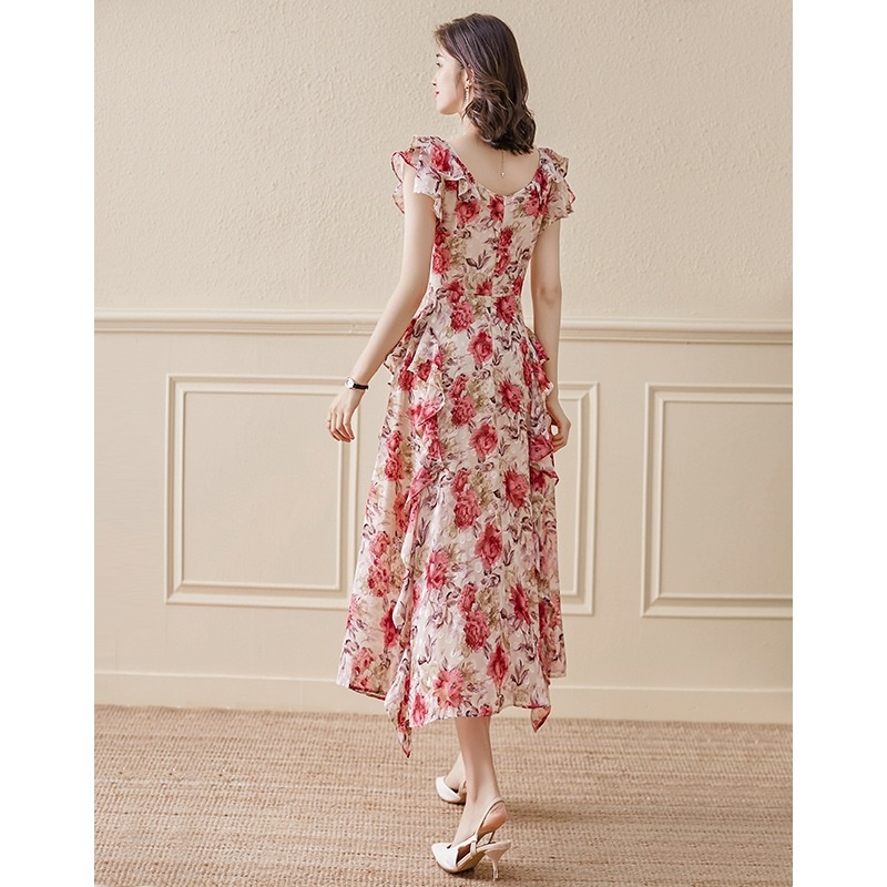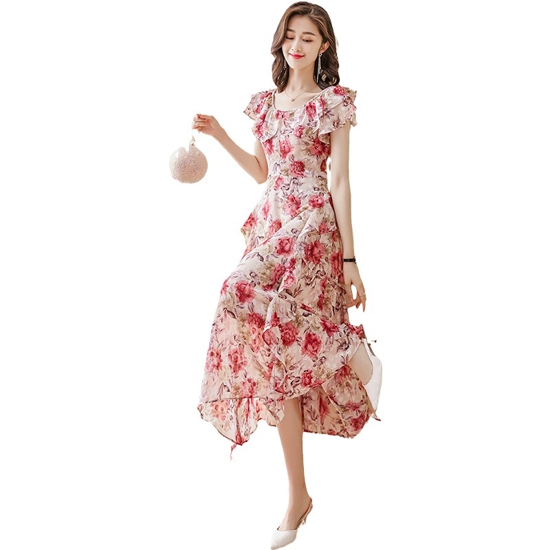 商品名称:雪纺碎花连衣裙女夏2025年新款夏季薄款法式收腰气质长款裙子仙女