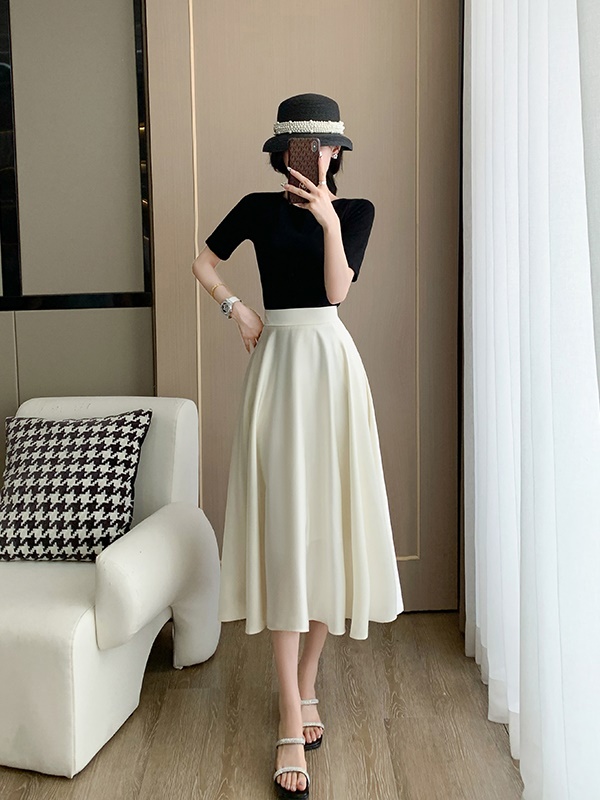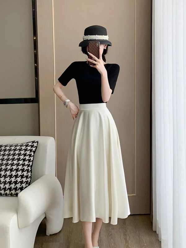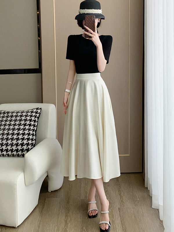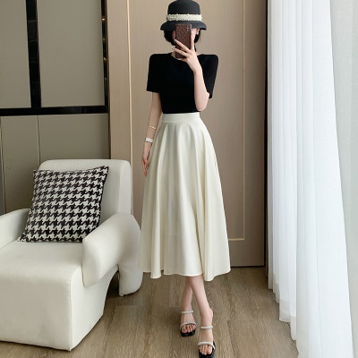 商品名称:高腰显瘦a字伞裙赫本风御姐套装女夏高端精致醋酸缎面白色半身裙