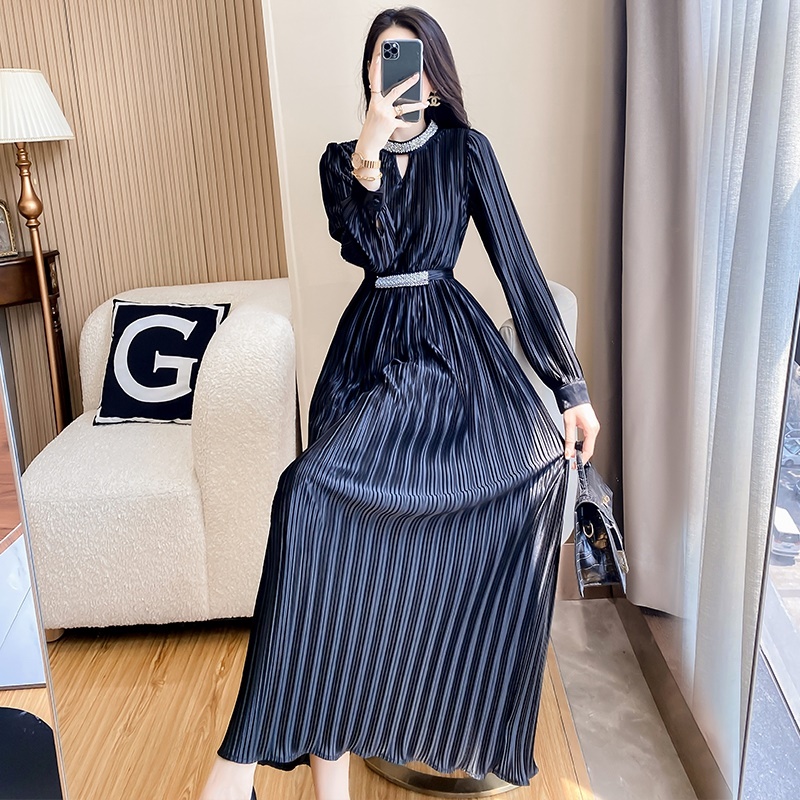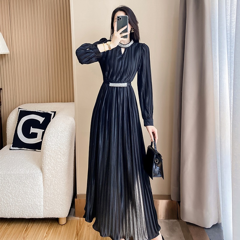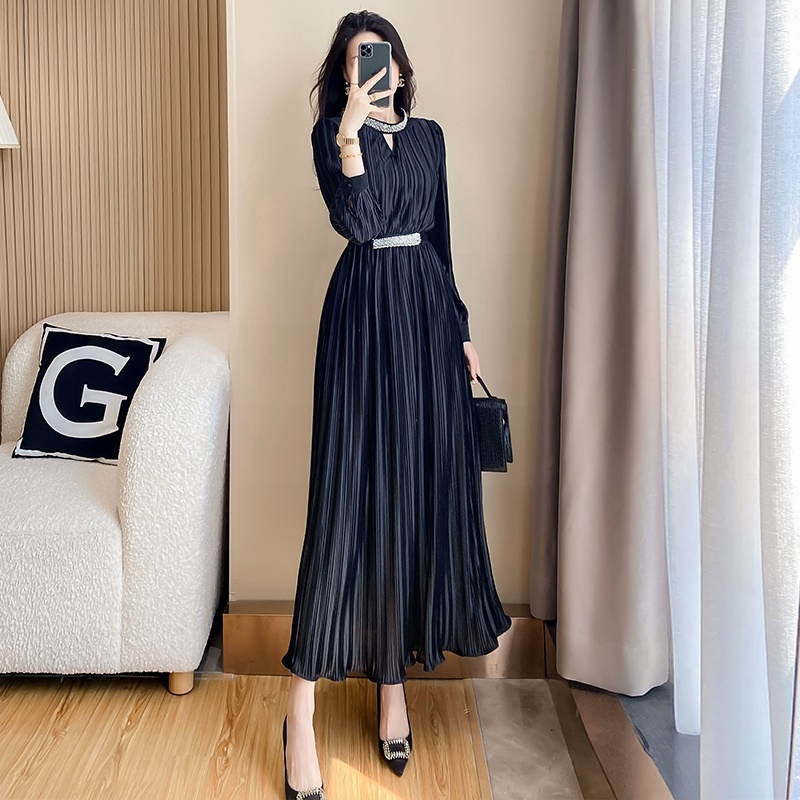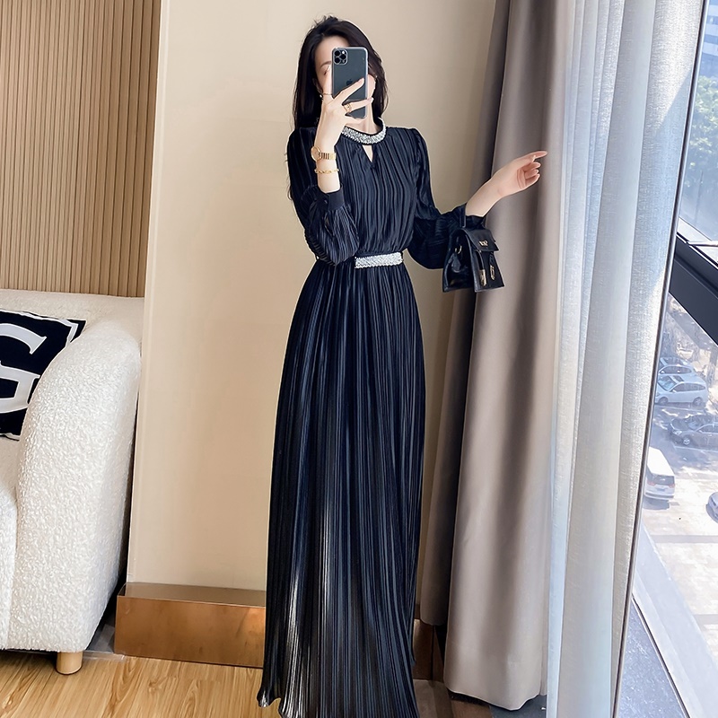 春装2025新款气质黑色连衣裙高级感中长款晚礼服裙子轻奢小众高端
