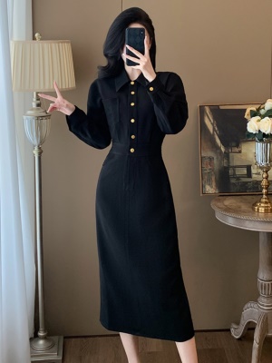 黑色气质高级感衬衫连衣裙女2025秋季新款修身包臀通勤POLO小黑裙