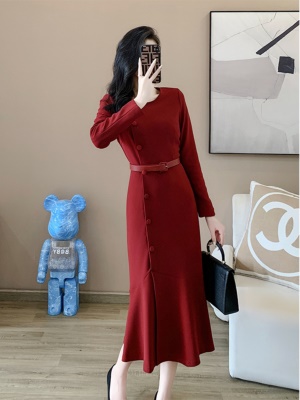 高级感宴会礼服裙轻奢小众鱼尾红色订婚连衣裙秋装结婚回门敬酒服
