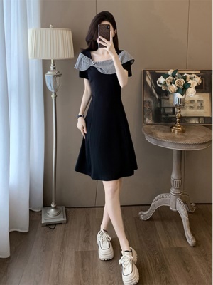 蕾丝拼接黑色连衣裙女2025春装新款高级感收腰显瘦气质赫本晚礼服