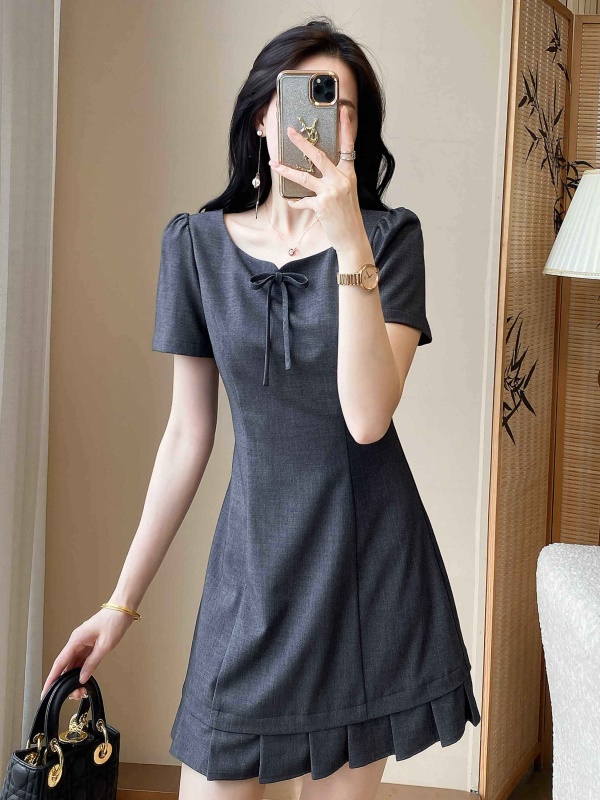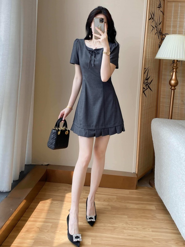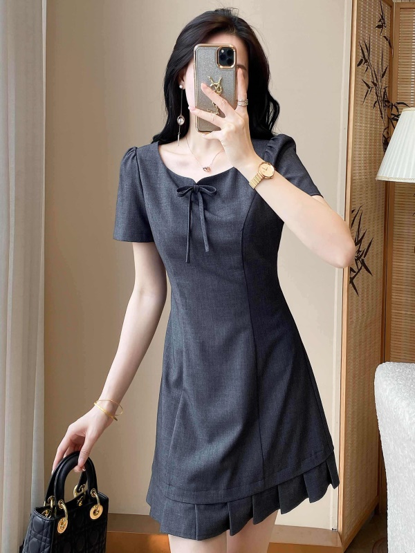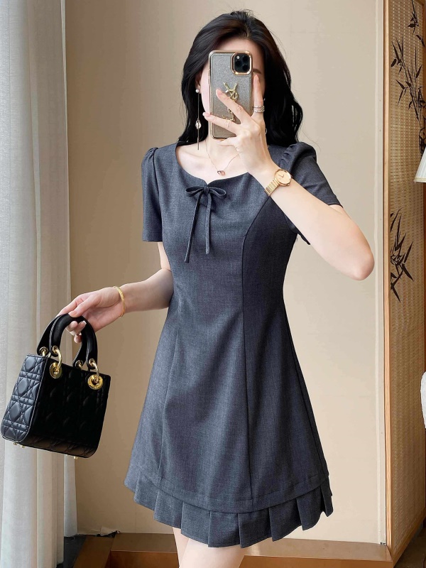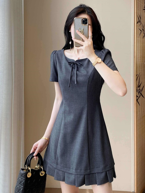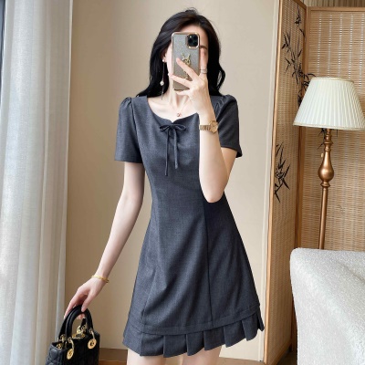 时尚高端气质职业通勤灰色OL连衣裙女2025夏季新款百褶裙子小个子
