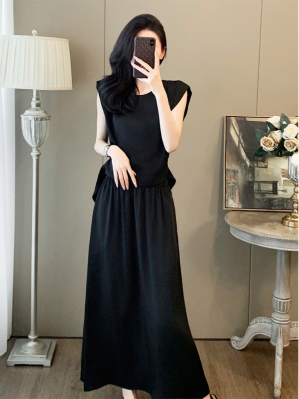 高级感黑色时尚套装裙女夏穿搭洋气显瘦百搭休闲上衣半身裙两件套