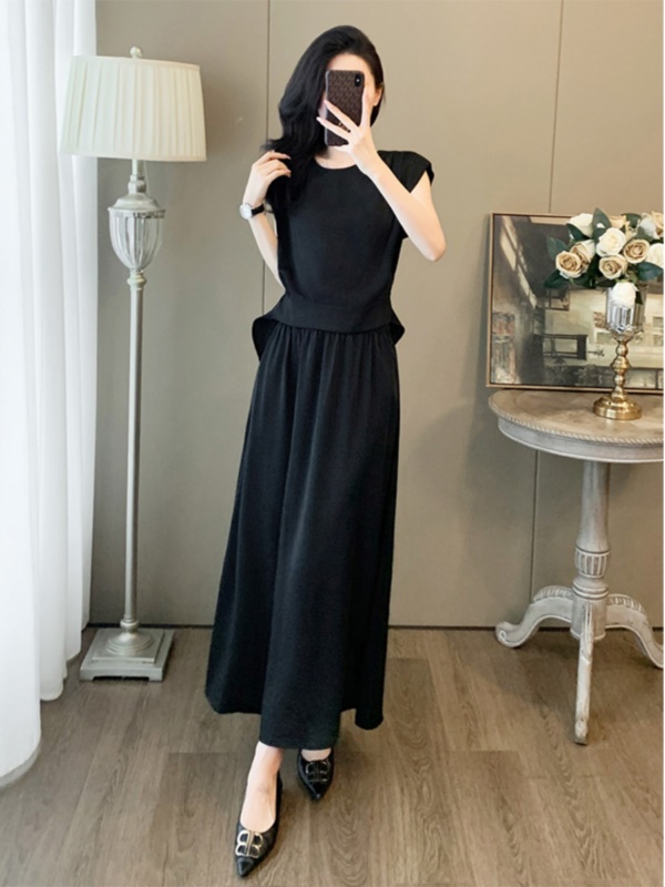 商品名称:高级感黑色时尚套装裙女夏穿搭洋气显瘦百搭休闲上衣半身裙两件套