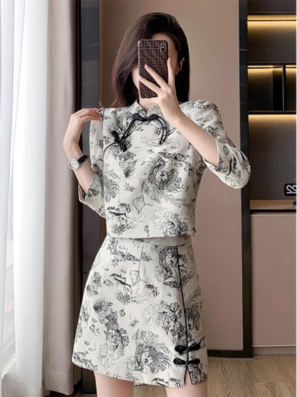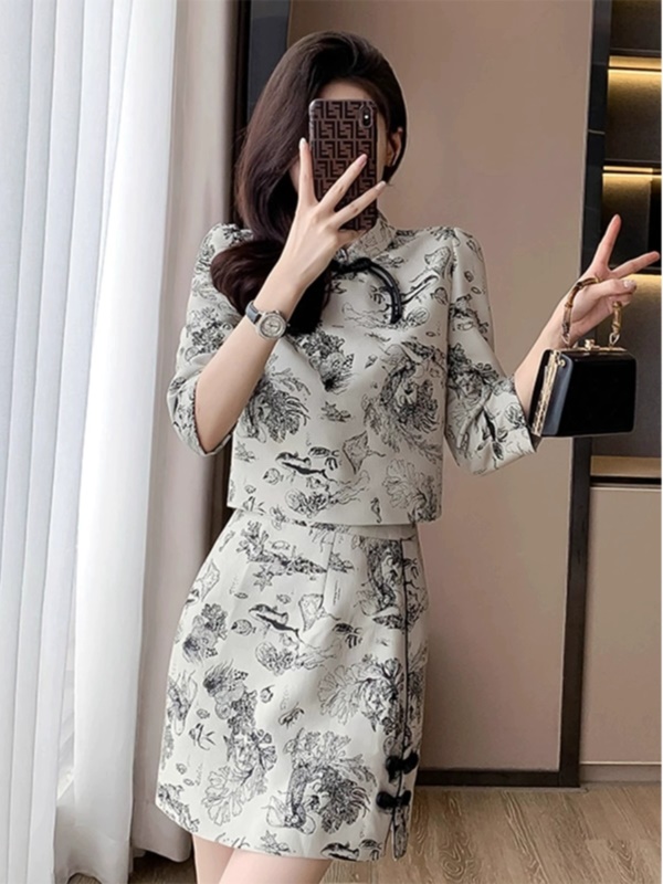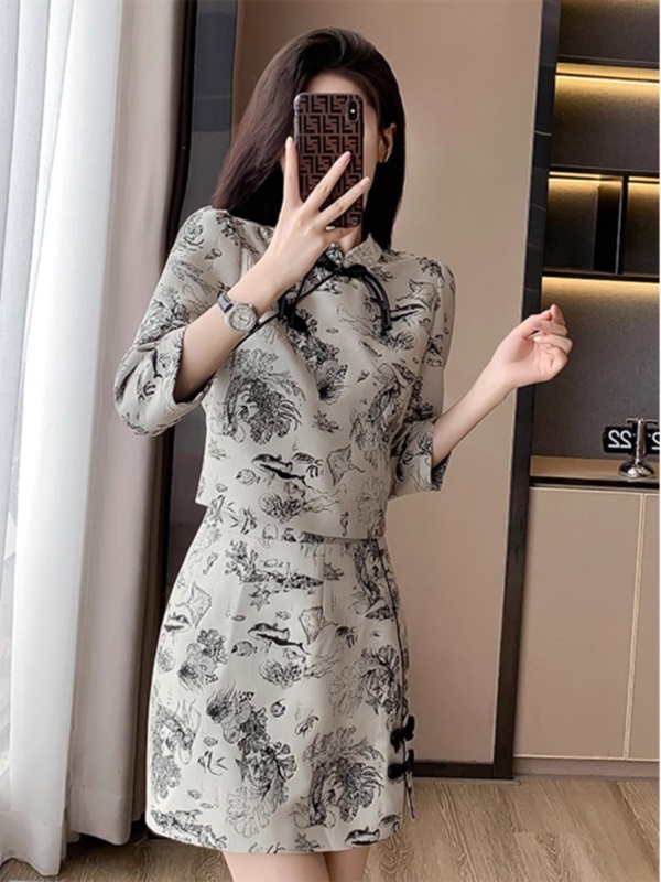 改良旗袍2025新款短款春秋小个子包臀半身裙两件套国风新中式套装