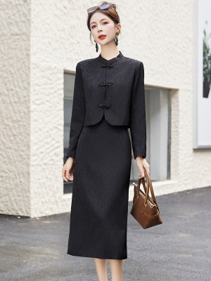 新中式小香风复古套装女2025春秋季新款高端大气盘扣鱼尾裙两件套