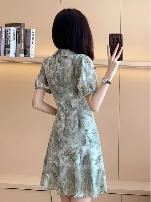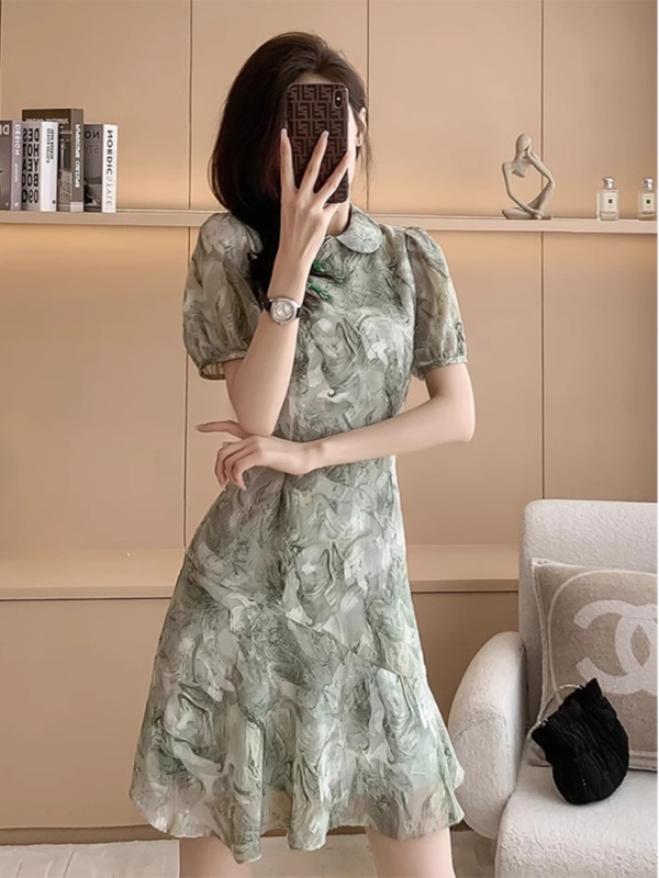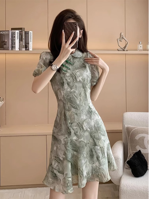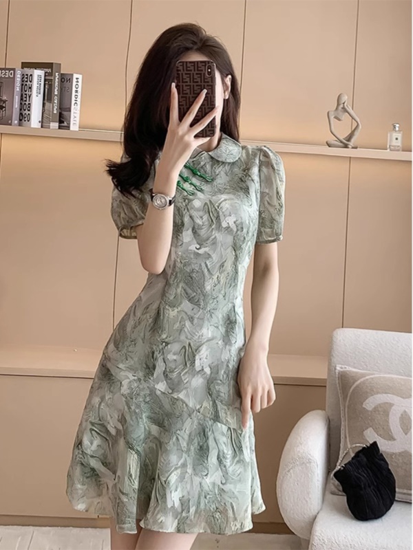 商品名称:新中式国风收腰显瘦改良旗袍裙2025夏季新款短袖雪纺连衣裙小个子