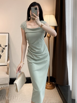 绿色吊带连衣裙女夏气质女人味高端女装修身显瘦法式性感包臀长裙