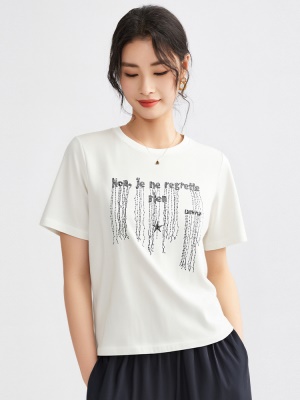 甜美舒适中袖T恤女短袖夏季2025爆款u领五分袖正肩修身高级感上衣